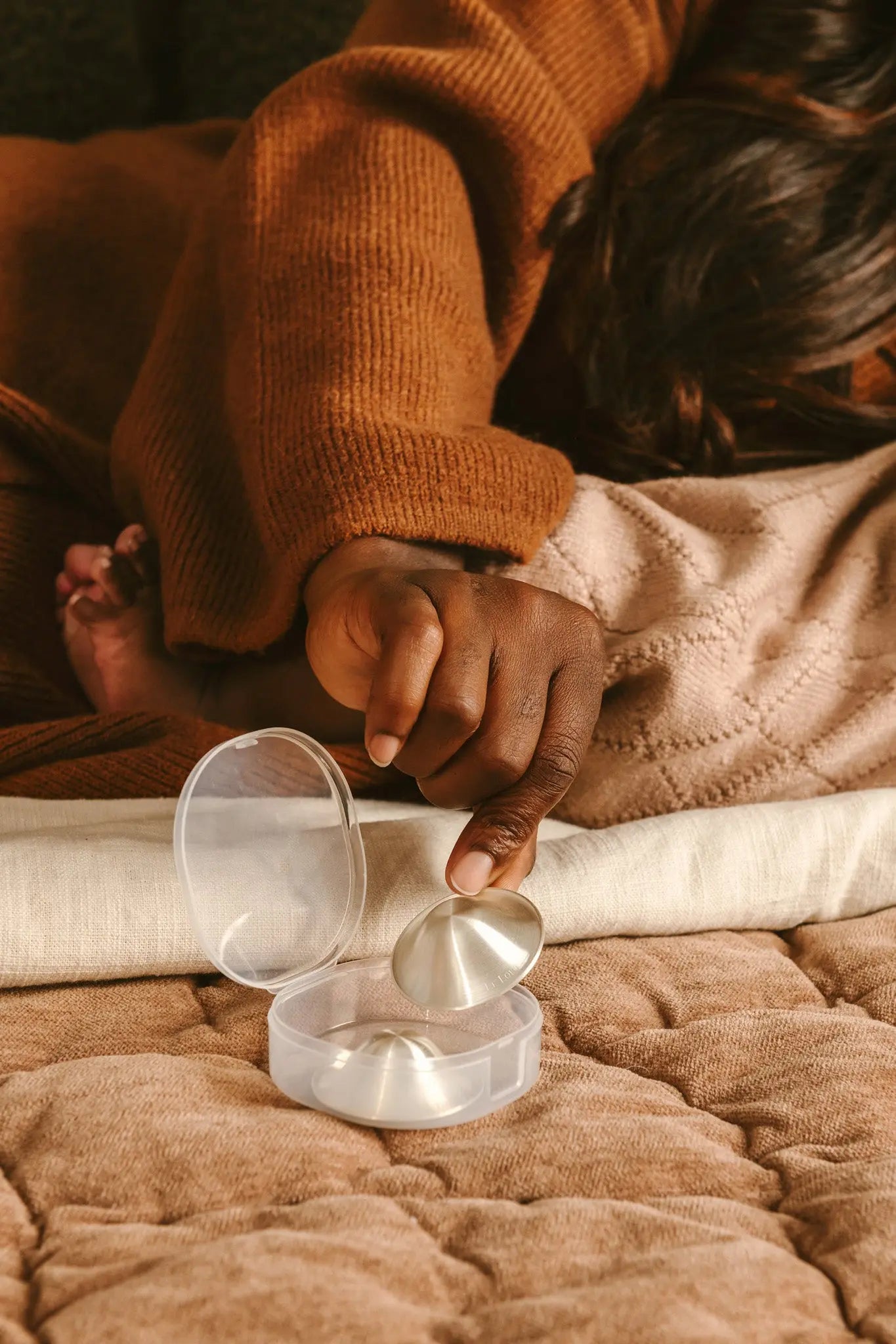 Place your Le Lolo Silver Nursing Cups over your nipples after your breastfeeding or pumping session. Some mamas like to add a few drops of breast milk inside for extra comfort, but it’s totally optional! Keep your cups on as long as you can between feedings, and take them off when it’s time to nurse.
